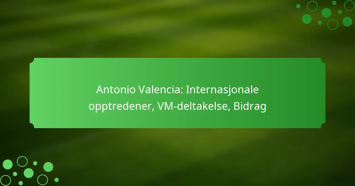 Antonio Valencia hadde en bemerkelsesverdig innvirkning under sin deltakelse i FIFA verdensmesterskap, hvor han representerte Ecuador i tre turneringer. Hans bidrag inkluderte viktige målgivende pasninger og solide prestasjoner som fremhevet hans ferdigheter på en internasjonal scene.