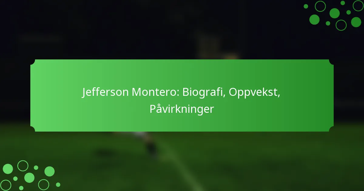 Jefferson Montero er en ecuadoriansk profesjonell fotballspiller kjent for sin eksepsjonelle fart og ferdigheter på kanten. Født i 1989, har hans oppvekst i en sportsorientert familie og veiledning fra ulike mentorer vært avgjørende for hans utvikling, noe som har gjort at han har hatt en betydelig innvirkning både i klubb- og internasjonal fotball.